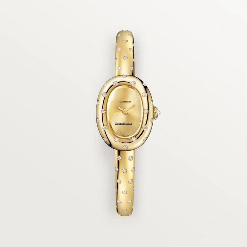 Baignoire在2023年重新推出,此後每年都有新品,弧形錶鏡、典雅羅馬數字時標,依舊是嬌巧琢美的細節,陸續推出皮錶帶、貴金屬手鐲、鑲鑽和鋪鑲鑽石等多款。