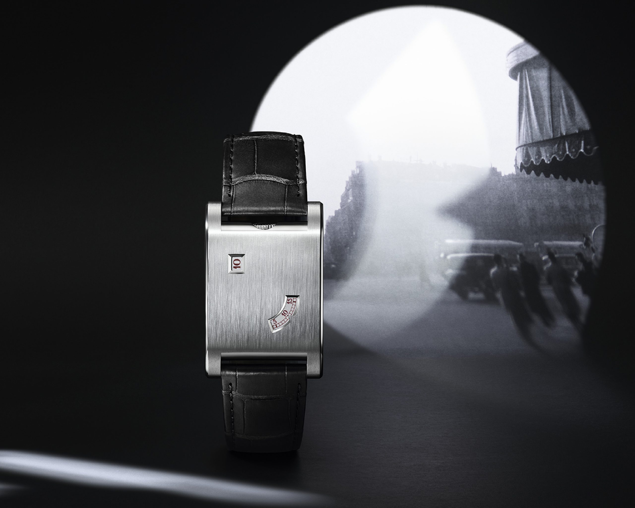 Tank à Guichet誕生於1928年,在當時是一枚直指未來、擁抱機械科技年代的設計。Guichet法文指稱「窗、計數器」,Tank à Guichet承繼坦克錶錶殼、錶耳一體成型的幾何線條,視窗選用「翻頁」顯示,時逢火車、汽車等機械工業群起勃發的年代,車站象徵世界與族群的交會,公諸時間與起訖點的時刻表,便是以機械翻頁顯示,Louis Cartier將之轉用於腕錶,懷想未來願景。