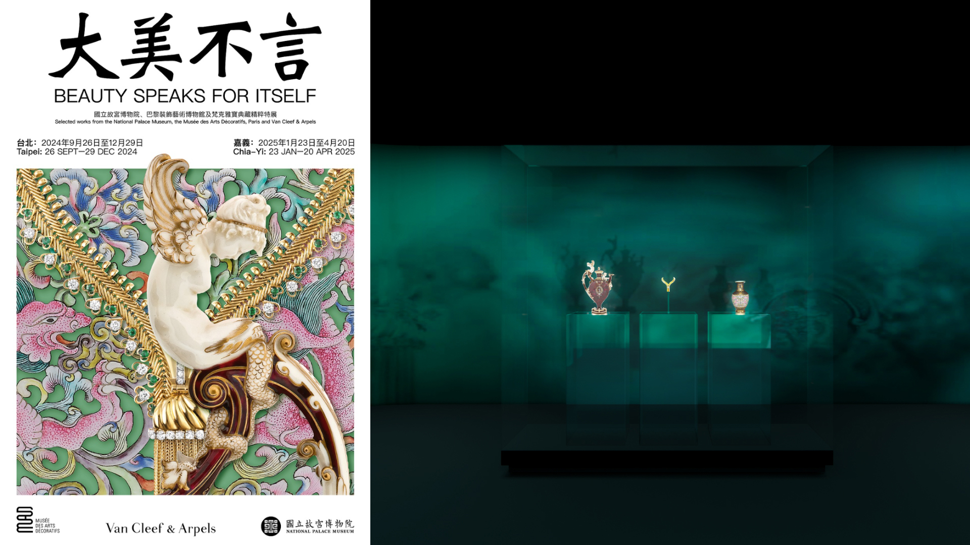 編按:《大美不言》(Beauty Speaks for Itself)特展為故宮100週年院慶開啟序幕,為國立故宮博物院、巴黎裝飾藝術博物館和Van Cleef & Arpels (梵克雅寶)珠寶世家三方共展,透過田根剛(Tsuyoshi Tane)操刀之沉浸式「舞台場景(tableaux)」,呈現逾260餘件館藏。而這也是故宮博物院繼2012年與精品龍頭暨百年珠寶世家Cartier(卡地亞)合作特展後,第二次與珠寶世家合作。展名取自莊子名言「天地有大美而不言」,寓意人族好美物之天性,舉世皆然。特展各於2024年9月26日至12月29日於台北故宮博物院、2025年1月23日至4月20日於嘉義故宮博物院舉行。